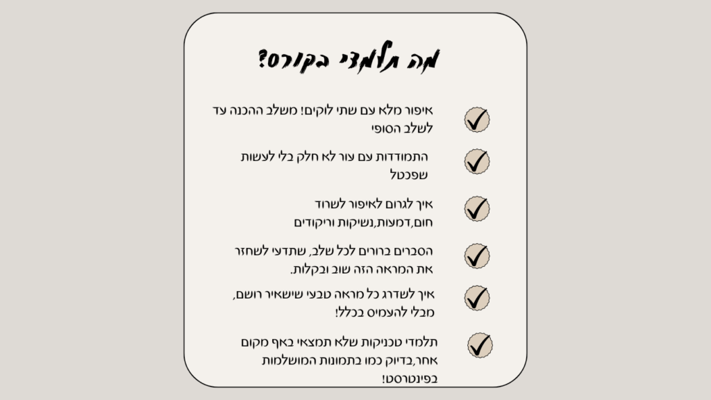 היום אני יוצרת אותו ב-40 דקות – בטכניקה שעובדת לי כל פעם מחדש.